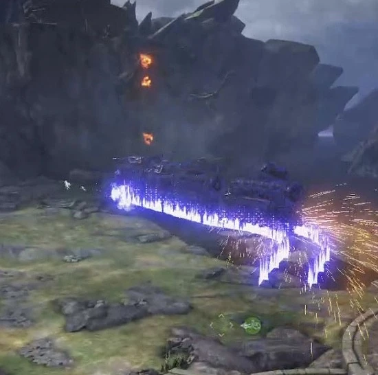![]() Marque un arrêt avant d'effectuer un tir dévastateur avec ses canons frontaux. |