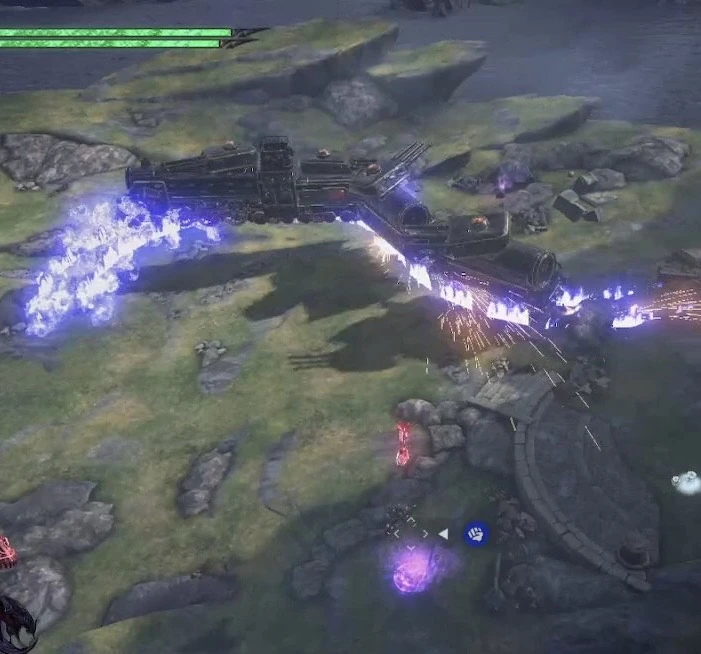 Le train de guerre Gouon est une immense machine capable de se déplacer n'importe où, aussi bien sur les murs que dans les airs, grâce à des flammes violettes qui lui servent de rails. Sa masse très importante, combinée à sa grande vitesse, font que ses charges infligent de lourds dégâts aux ennemis, sans compter toutes les tourelles de canons et les tronçonneuses situées sur chacun de ses wagons.