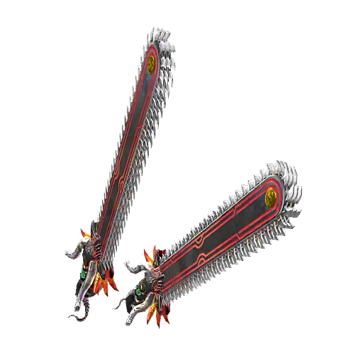 - Armi infernali: Una coppia di motoseghe costruite utilizzando l'intero corpo del drago infernale Salamandra. I denti delle motoseghe sono costituiti da squame e il cuore del drago ne alimenta il motore.