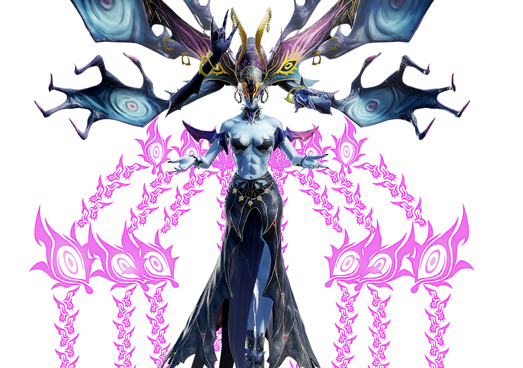 Madama Butterfly is manifested in Bayonetta 3 through Demon Masquerade when Colour My World is equipped. She merges with Bayonetta to execute powerful attacks in regular combat as well as traverse the world in the transformed state. She can also be summoned in her entirety to fight against the Homunculi while using the Demon Slave ability.