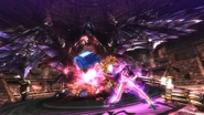 In the first game, Malphas is first unleashed as a Climax Attack on Fortitudo, slamming the draconic Auditio against a large rock and repeatedly pecking his face. The demon finishes its attack with a blow so fierce it punches through Fortitudo's head and shatters the rock behind it.