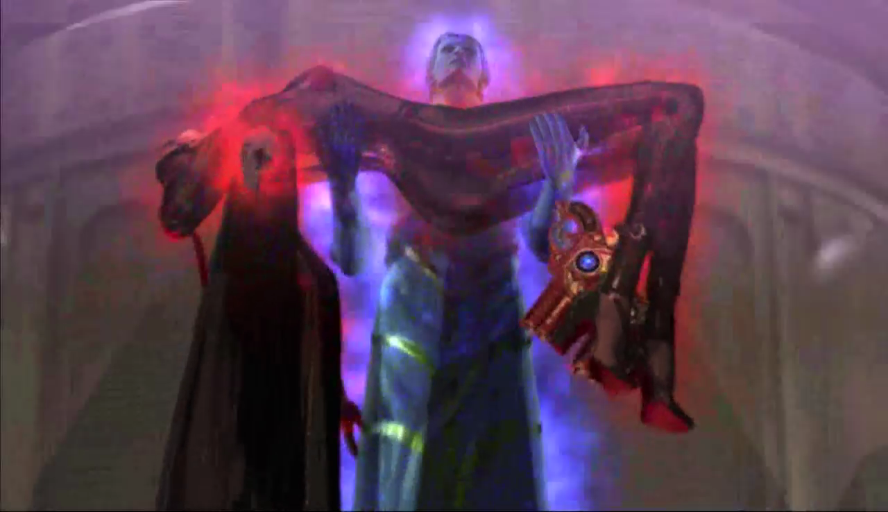 Plotting to resurrect Jubileus by awakening an amnesiac Bayonetta's left eye five hundred and twenty years later. Using the Laguna as pawns to strengthen her power, brainwashing the surviving Jeanne to help her regain her former magical and physical prowess, and bringing back the child version of herself to recover her lost memories of the past his plan proved successful as he resurrects Jubileus as Bayonetta inadvertently changes the course of her own past and awakens her power as the Left Eye.
